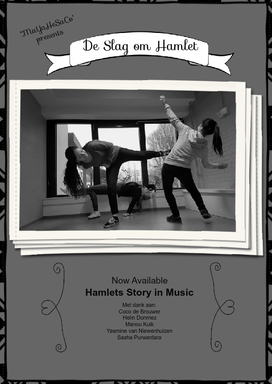 Dit Hamlet-opdracht heb ik samen gemaakt met Helin, Coco, Manou en Yasmine. Wij hebben hiervoor een lied geschreven en hierbij ook een poster gemaakt. In feite zijn het twee aparte werken die elkaar aanvullen. Namelijk het lied, door Manou en Yasmine en dan de poster van Helin, Coco en ik. Het lied wordt op 28/01/2017 ingezongen en het eindresultaat zal natuurlijk hier op de site staan. Zie hier ons kunstwerk: 'Hamlets Story in Music.'